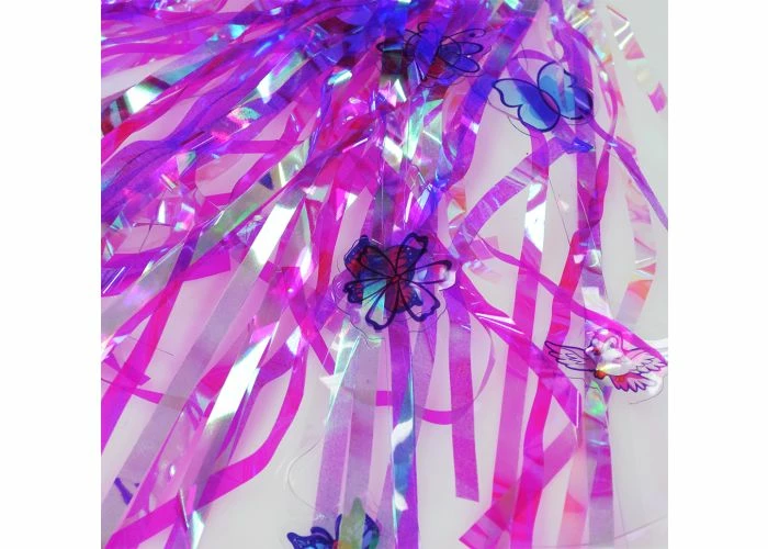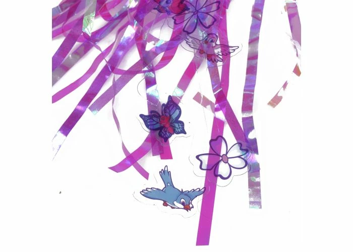 These white, pink, and purple streamers come festooned with flowers, birdies, and butterflies