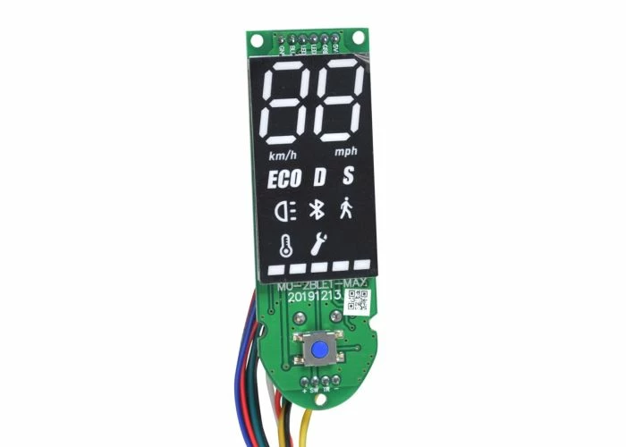 Basically a Printed Circuit Board (PCB) together with the On/Off switch and wires, the Bluetooth board uses an LED panel to show the scooter’s speed, lights, and other vital pieces of riding information.