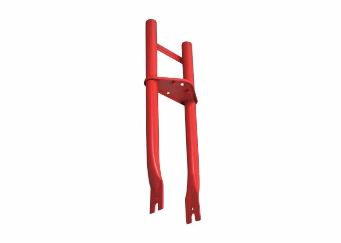 The twin strut red front fork for the Hover-1 H1 TRAK electric dirt bike is one of those mini bike parts that take a lot of stress and abuse, and a well-used fork may eventually need replacement