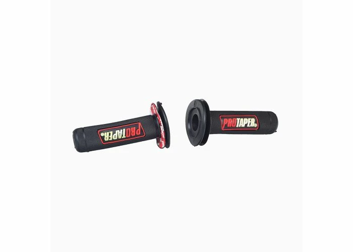 Our **Scratch & Dent** Red Pro Taper Handlebar Grip Set isn’t scratched or dented, it just has one grip with the Pro Taper logo upside down. Most people won’t even notice it, and if you mount it with the logo facing aft, then it reads correctly.