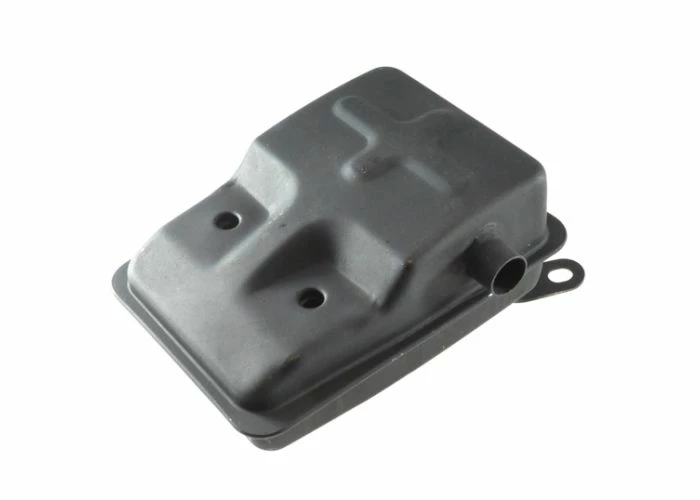 Stock gas scooter muffler used on 33cc, 36cc, 43cc, 49cc, and 52cc engine sizes